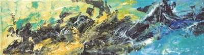 吳冠中老先生曾說,中國畫不能“近親結(jié)婚”。因?yàn)槲覀兊囊曇蔼M窄。藝術(shù)是相通的,不分東方和西方。因此,劉家男不斷吸收東西方精華,并運(yùn)用于作品之中。她的作品既能呈現(xiàn)出西方作品的色彩美感,同時(shí)又兼具中國潑墨的畫面呈現(xiàn)。無論是胡楊林系列,還是天端系列、鯨落系列以及自然系列,其作品的整體色彩都是非常大膽的,給人以強(qiáng)烈的視覺沖擊。劉家男認(rèn)為,這是一個(gè)藝術(shù)家應(yīng)有的標(biāo)志性符號(hào)。
