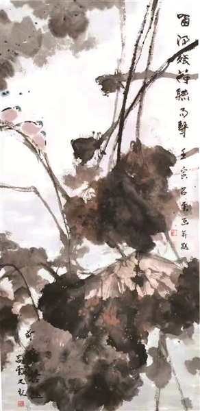 《留得殘荷聽雨聲》國畫 68x136cm 2021年