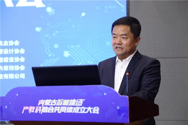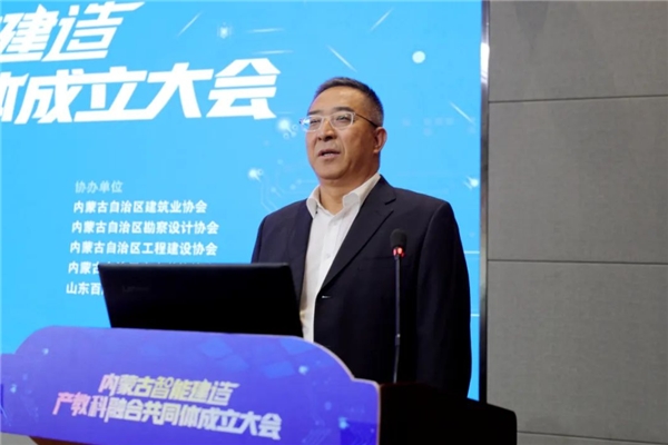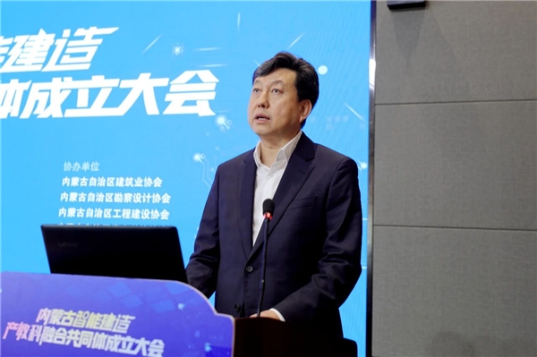 王剛講話,他指出,內(nèi)蒙古智能建造產(chǎn)教科融合共同體的成立,標(biāo)志著內(nèi)蒙古自治區(qū)智能化建設(shè)領(lǐng)域的職業(yè)教育邁入了一個(gè)新的發(fā)展階段,對(duì)加快內(nèi)蒙古自治區(qū)建筑行業(yè)轉(zhuǎn)型升級(jí),推動(dòng)內(nèi)蒙古自治區(qū)經(jīng)濟(jì)發(fā)展具有重要意義,希望共同體以及各成員單位把握綠色建材、裝配式建筑這一大發(fā)展方向,注重智能化與各種綠色低碳材料、工業(yè)化部品部件、清潔能源和超低能耗建筑的結(jié)合,為企業(yè)和社會(huì)培養(yǎng)、輸送更多高素質(zhì)技術(shù)技能人才,在校企合作中幫助企業(yè)、行業(yè)孵化更加成熟的新技術(shù)體系,共同提升內(nèi)蒙古智能建造產(chǎn)教科融合共同體對(duì)建設(shè)現(xiàn)代產(chǎn)業(yè)體系的支撐作用。