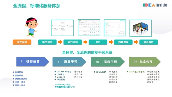 只需一間20平米的示范教室,運用標(biāo)準(zhǔn)化的服務(wù)方案,就可以把深耕行業(yè)多年沉淀的IDEA教學(xué)模式帶回機構(gòu)/學(xué)校/幼兒園/醫(yī)療單位,進行數(shù)字化、標(biāo)準(zhǔn)化的康復(fù)干預(yù)。一個標(biāo)準(zhǔn)的、數(shù)字化管理的愛迪因教學(xué)示范教室,可以復(fù)制到任何一個線下中心,開展專業(yè)兒童康復(fù)干預(yù)。
