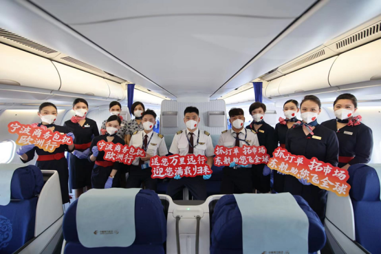 飛機(jī)起飛后,機(jī)長(zhǎng)通過(guò)客艙廣播系統(tǒng)向代表團(tuán)表達(dá)美好祝愿:“今天的航程注定意義非凡,復(fù)工達(dá)產(chǎn)、促進(jìn)外貿(mào)的共同目標(biāo),讓我們相聚在萬(wàn)米高空,共同的使命,讓我們對(duì)前程充滿期待。本次航班是寧波首趟也是全國(guó)首創(chuàng)的涉外商務(wù)人員包機(jī),你們傳承著新時(shí)代浙商精神,創(chuàng)業(yè)創(chuàng)新闖天下,合心合力強(qiáng)浙江,展現(xiàn)著中國(guó)企業(yè)迎難而上的信心與勇氣。非常高興與你們同行,你們出國(guó)抓訂單、拓市場(chǎng),東航助你們?nèi)蝻w、飛全球,一路相伴、共創(chuàng)精彩。衷心祝愿大家在歐洲工作順利,帶著訂單滿載而歸,祝愿中國(guó)企業(yè)服務(wù)祖國(guó)、走向世界的航程更廣闊!”