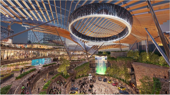 “上海國際新文創(chuàng)電競中心”設(shè)置了全球首個雙電競場館,主場館是華東首座國際標(biāo)準(zhǔn)的電競場館,面積達(dá)15,000㎡,擁有3,000個座位,除了舉辦電競職業(yè)聯(lián)賽外,還可承辦各類明星演唱會、見面會、綜藝晚會等?!癊DG合創(chuàng)汽車英雄聯(lián)盟LPL主場賽館”面積6,000㎡,可容納1,000座位,未來必將成為全球EDG粉絲的朝圣地,同時也將聯(lián)合專業(yè)演藝公司,打造沉浸式劇場、LIVEHOUSE功能,全年活動無間斷!此外,上海超極合生匯項目還擁有上海最大下沉式廣場“電競搖滾觀賽區(qū)”,巨型的環(huán)繞型媒體環(huán)作為中心廣場的精神堡壘,實時為玩家?guī)砻恳粋€激動人心的游戲時刻。