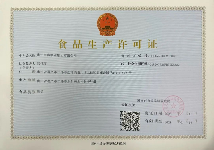 南將酒業(yè)集團生產許可證