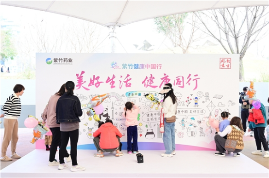現(xiàn)場還設(shè)置了“涂鴉墻”和健康合影板,吸引了眾多參觀者打卡互動。大家共同繪制的“涂鴉墻”上,留下了對親友及自己的健康祝福,而創(chuàng)意十足的健康合影板,記錄下諸多的歡樂瞬間……