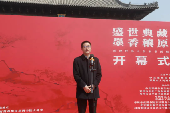 為全面學(xué)習(xí)貫徹黨的二十大精神,弘揚(yáng)傳承中華優(yōu)秀傳統(tǒng)文化,進(jìn)一步繁榮鄧州文藝事業(yè),以優(yōu)秀的作品豐富群眾文化生活,3月30日,“盛世典藏墨香穰原”中國近現(xiàn)代名人名家書畫展在河南省鄧州市花洲書院開幕。來自北京藝術(shù)界代表,南陽市文聯(lián)、美協(xié)、書協(xié)代表,鄧州市相關(guān)文化部門負(fù)責(zé)人及鄧州市廣大書畫愛好者參加了開幕式。