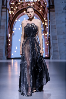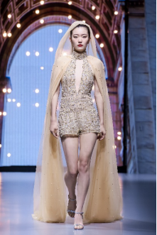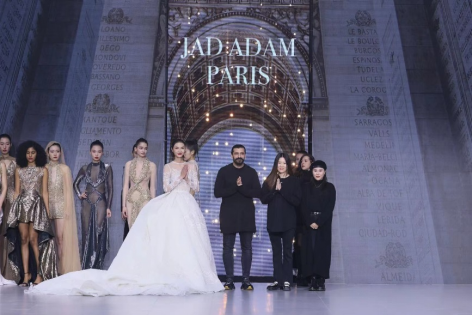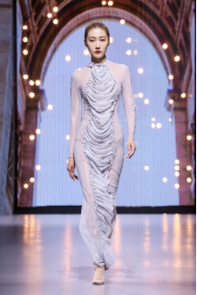 在充滿異域風(fēng)情的“巴爾米拉女王”主題發(fā)布中,法國(guó)高定女裝設(shè)計(jì)師JadAdam攜手紹興永耀紡織品有限公司、紹興晶遠(yuǎn)創(chuàng)意設(shè)計(jì)有限公司展現(xiàn)了尋找內(nèi)心平靜的啟蒙之旅的獨(dú)特過(guò)程。設(shè)計(jì)師從柯橋優(yōu)秀的面料中獲得啟發(fā),在華麗的禮服裙中采用了大量的刺繡及繡片繡珠工藝。兩家企業(yè)提供的閃光高密度歐根紗、銀色金屬絲、清透網(wǎng)眼等面料,花型立體簡(jiǎn)潔、色彩透亮多變,為設(shè)計(jì)師帶來(lái)了豐富的靈感。從晚禮服、婚紗到高級(jí)時(shí)裝,JadAdam通過(guò)特有的藝術(shù)表現(xiàn)手法詮釋了本次禮服設(shè)計(jì)。