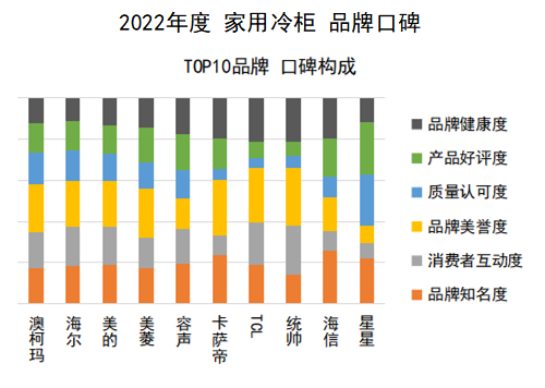 綜合來看,2022年度家用冷柜TOP10品牌的口碑構(gòu)成如下圖所示: