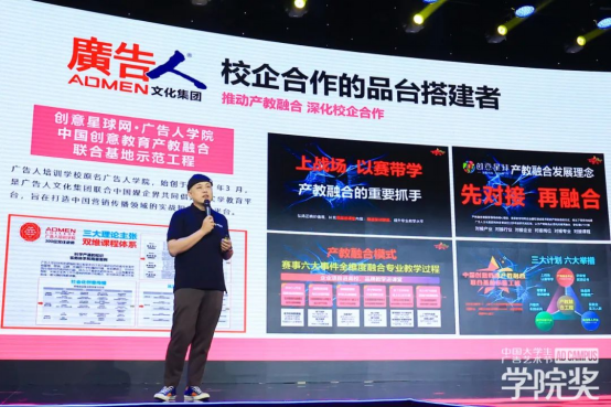 創(chuàng)意星球董事、副總經(jīng)理李春生先生題為《做校企合作的提燈人和馬車夫》的演講。李春生先生詳細(xì)說明廣告人文化集團(tuán)的歷程、內(nèi)容生態(tài)圈與平臺戰(zhàn)略布局,表示:“廣告人文化集團(tuán)發(fā)展至今,積累了深厚的社會資源。作為熱愛教育事業(yè)的追夢人,在各高校紛紛積極探索實(shí)踐教學(xué)、教育改革之路時(shí),廣告人文化集團(tuán)決心盡自己所能幫助高校在實(shí)踐教學(xué)的道路上走得更快?!?br />