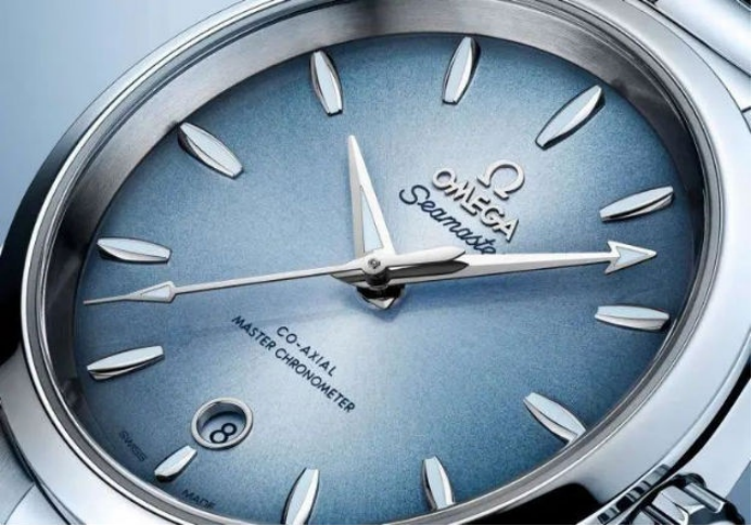 150米這個(gè)深度在海洋的層次中屬于照光層。這次歐米茄海馬紀(jì)念款在150米的防水區(qū)間,有三款作品。分別是 Aqua Terra 38毫米,41毫米和世界時(shí)腕表。表盤淺藍(lán)色的漸變層次讓人聯(lián)想到夏日陽光下清澈透明的海水。