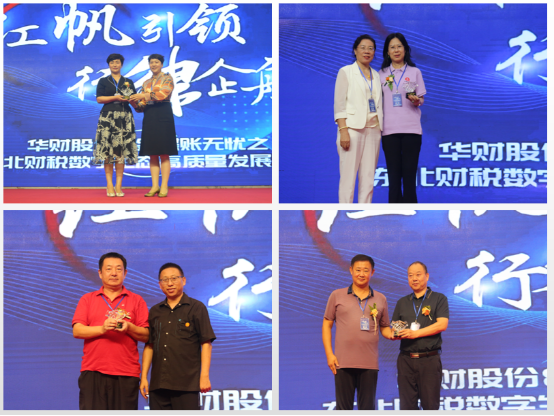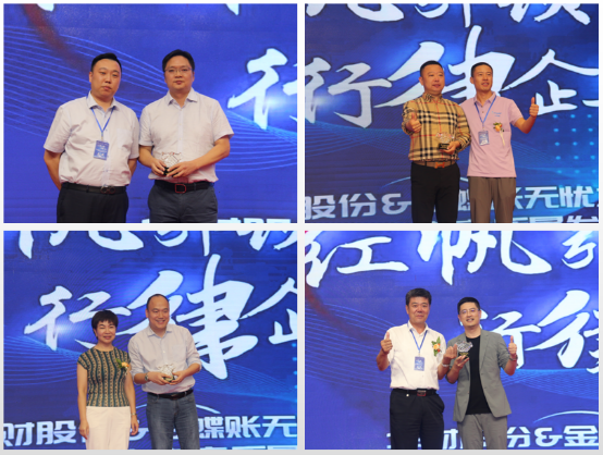 頒獎(jiǎng)嘉賓:北京華財(cái)會(huì)計(jì)股份有限公司董事長王久立,金蝶賬無憂CEO祝錦華,大連數(shù)宇宙產(chǎn)業(yè)園有限公司總經(jīng)理徐林。