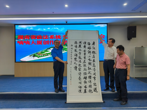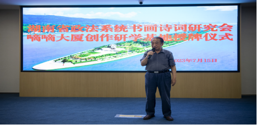 “全面建設(shè)社會(huì)主義現(xiàn)代化國(guó)家,必須堅(jiān)持中國(guó)特色社會(huì)主義文化發(fā)展道路,增強(qiáng)文化自信。文化是民族之根。應(yīng)該讀好‘兩本書(shū)’,一本是有字的經(jīng)典之書(shū),一本是無(wú)字的實(shí)踐之書(shū)。嘀嘀大廈緊鄰長(zhǎng)沙火車(chē)站,來(lái)往交通方便,文化氣息濃厚,在長(zhǎng)沙法官文聯(lián)學(xué)雷鋒書(shū)畫(huà)工作站的基礎(chǔ)上,進(jìn)一步成立政法文化創(chuàng)作研學(xué)基地,開(kāi)展各種有意義的詩(shī)詞書(shū)畫(huà)文藝活動(dòng),可以助力實(shí)現(xiàn)‘以文興商、以商促文’的雙贏目的,為建設(shè)社會(huì)主義文化強(qiáng)國(guó)貢獻(xiàn)出我們應(yīng)有的心智和力量。這樣的政法文化創(chuàng)作研學(xué)基地多多益善。”彭對(duì)喜對(duì)活動(dòng)給予高度肯定。