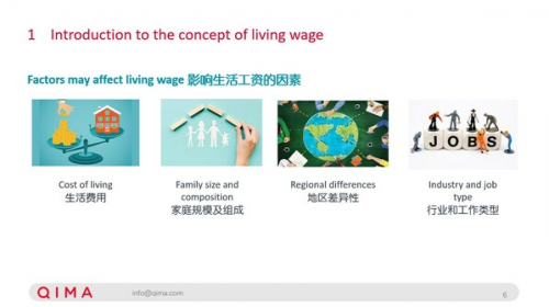 如何確定生活工資?啟邁QIMA專家介紹,生活費用、家庭規(guī)模及組成、地區(qū)差異性、行業(yè)和工作類型都是影響生活工資的因素。通常是先確定特定地區(qū)基本但體面生活的成本,包括食物、住房、教育、醫(yī)療保健、交通、服裝、意外開支及其他家庭基本需求。然后將家庭的總成本除以家庭中在職成年人平均數(shù),并考慮其他收入者的貢獻,并根據(jù)當?shù)貎r格和類型進行量身定制。這個數(shù)值代表該地區(qū)一個工薪階層單月的必要實得工資或凈生活工資。最后,凈生活工資根據(jù)稅收和扣除額進行調(diào)整。