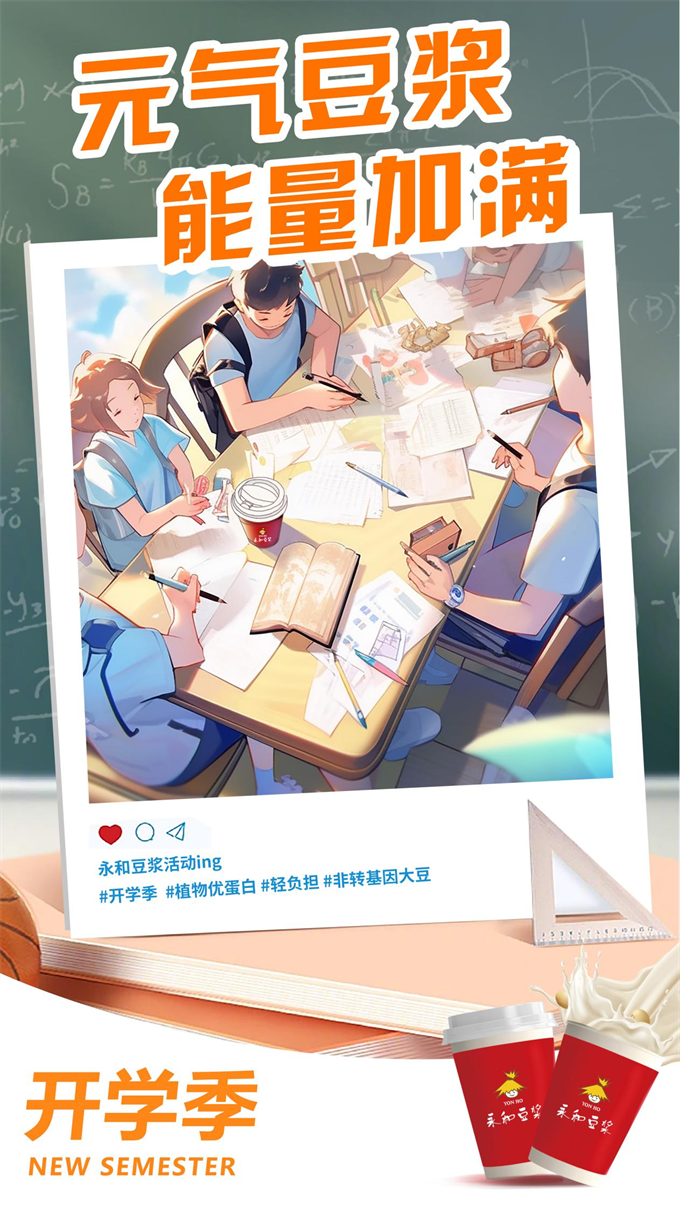 打造開學好狀態(tài),從永和豆?jié){開始。多元營養(yǎng)國際品質,讓家長更放心。新學期一起活力滿滿向前沖!